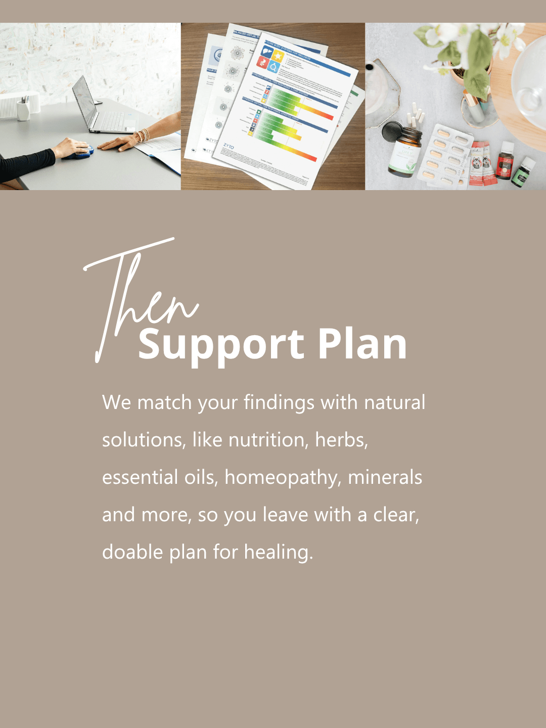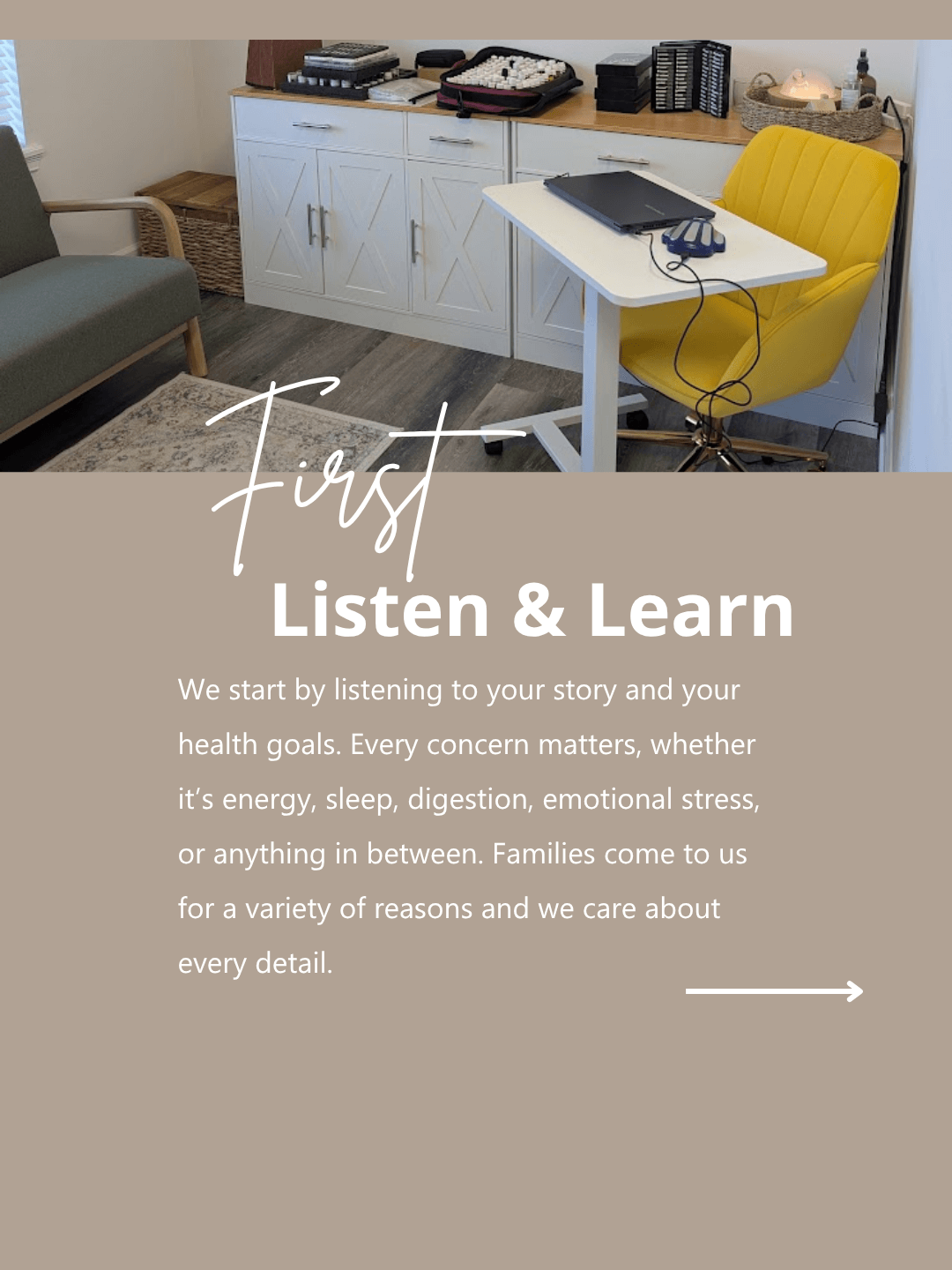 Your first session begins with a personalized health intake to discuss current symptoms, past history, and your wellness goals. We’ll then complete a quick Balance Scan using FDA-cleared GSR technology. This painless scan helps me assess foundational stress patterns in the body, guiding where we begin.